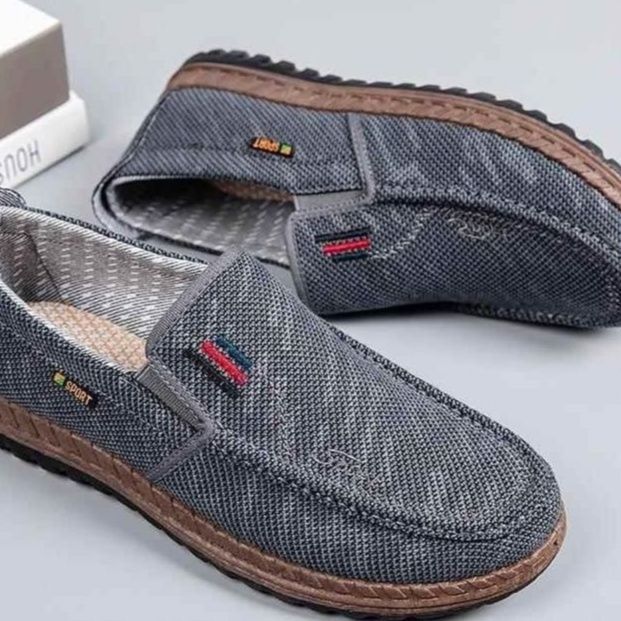 デニム風のキャンバス素材を使用したメンズ スリッポンです。