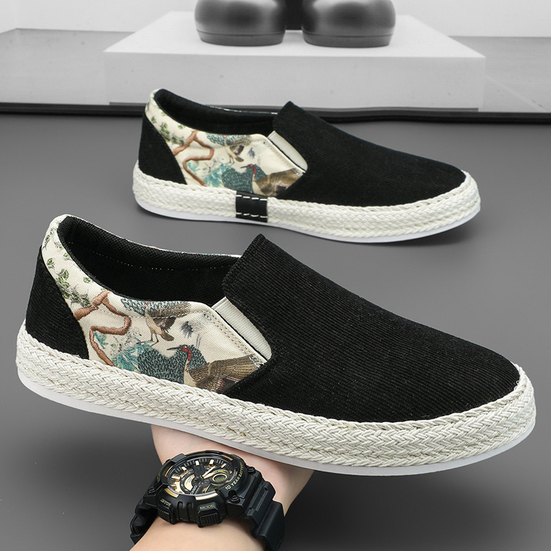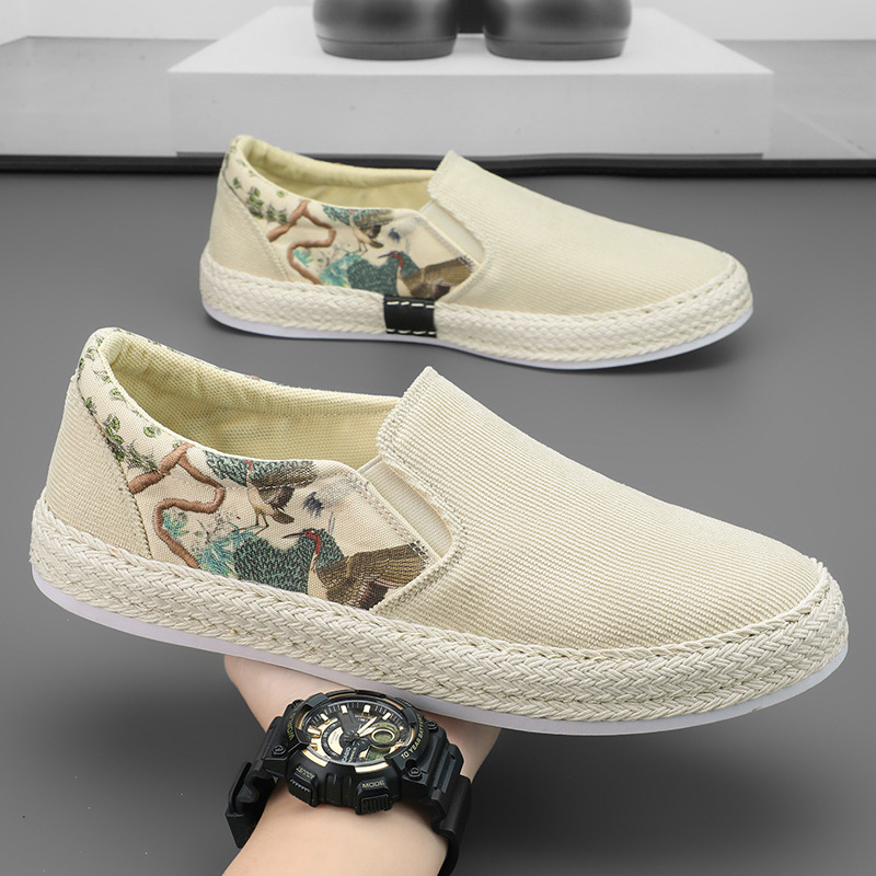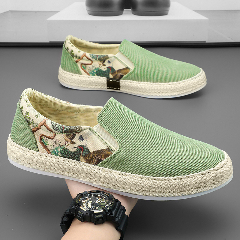 東洋風の絵柄がアクセントになったメンズ スリッポンです。